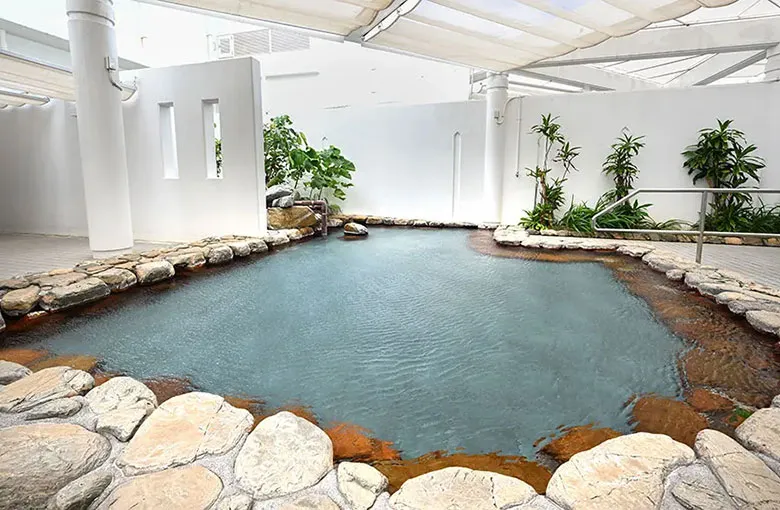 在眺望美丽大海的展望浴池中宽广的大浴场。