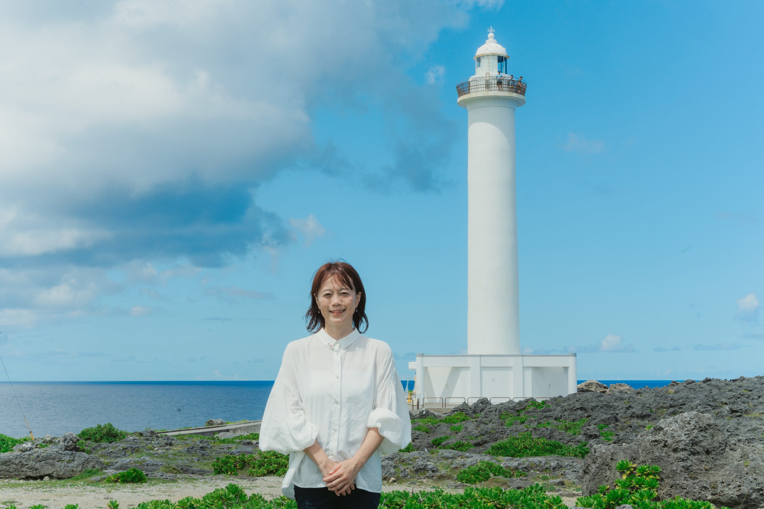 在那前面蔓延的风景,一天里没有一样的东西。在晴天的天空下,既有平静的大海广阔的日子,也有波浪冲击岩石的荒芜风景的日子。可以看到海龟在透明度高的大海中悠闲地游泳的样子,也可以看到从冬天到春天的座头鲸回游的样子。这座灯塔能近距离感受到自然的变化、冲绳的原风景,对我来说是工作场所,也是心灵治愈的重要场所。